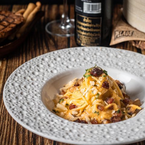 Hand filled ravioli with Australian Tajima wagyu beef topped with cep mushrooms, and pancetta sauce
