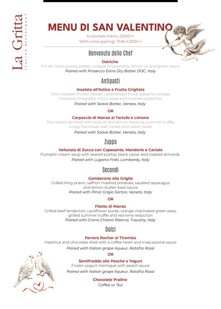 Let the gentle sea breeze set the mood for a magical evening by Patong Bay. At our enchanting Italian restaurant, Chef Giordano and his talented team create this menu with passion and love, where romance takes center stage on this special day.