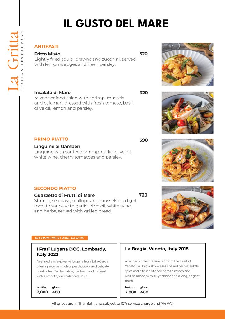 IL GUSTO DEL MARE – THE TASTE OF THE SEA IL GUSTO DEL MARE – THE TASTE OF THE SEA Discover the elegance of Italian seafood cuisine with carefully crafted dishes that celebrate freshness, authentic flavors and a refined seaside dining experience. Starting from 520+Available daily from 7 April 2026, 12:00 to 22:30