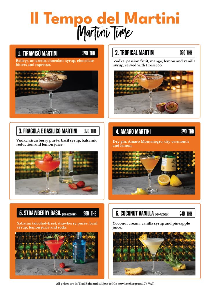 Il Tempo del Martini is an invitation to slow down, sip and savour the present. Each martini tells its own story, inspired by classic Italian flavours, modern twists and unforgettable evenings by the sea.
